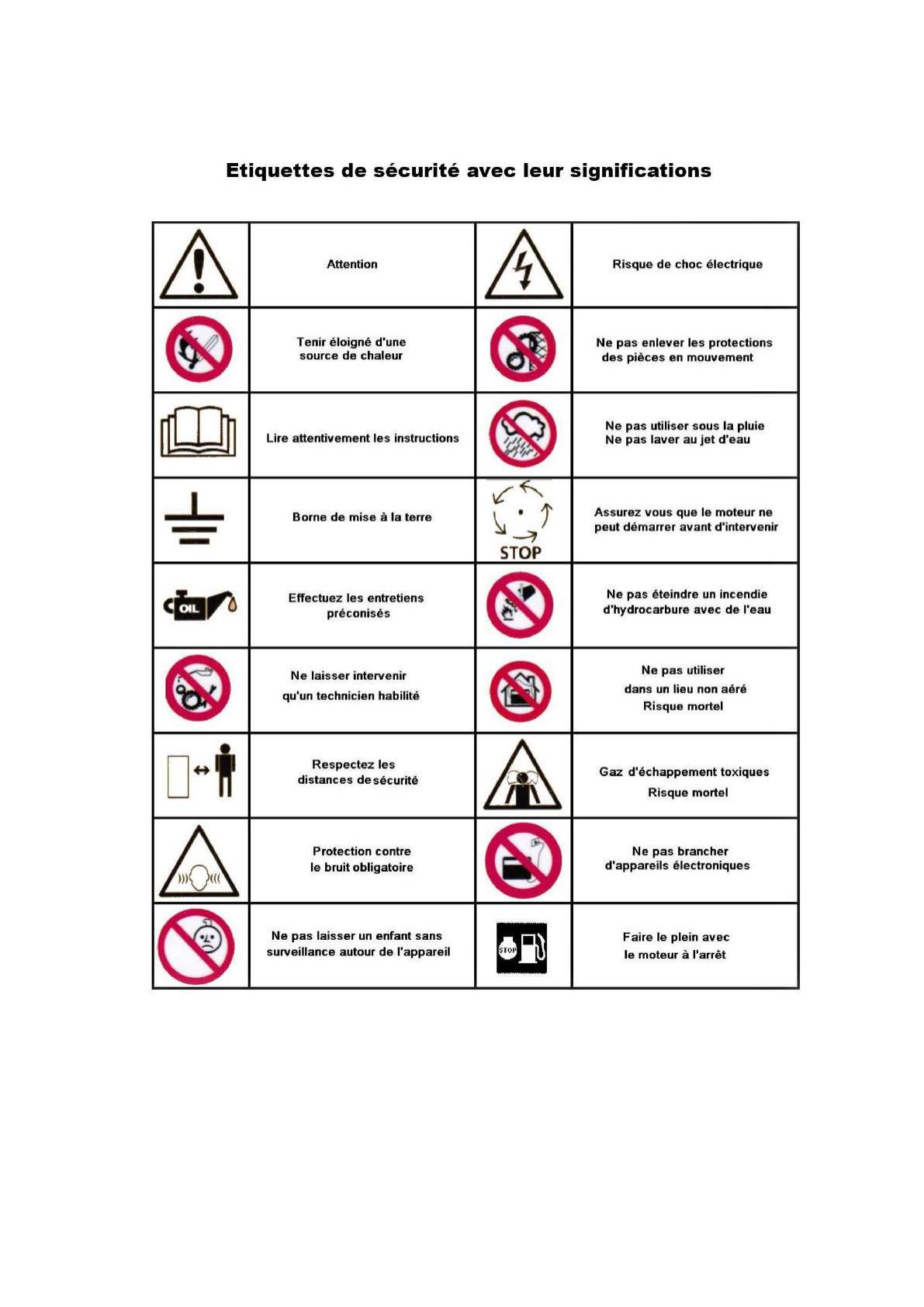 les consignes de sécurité reprises dans ce livret.