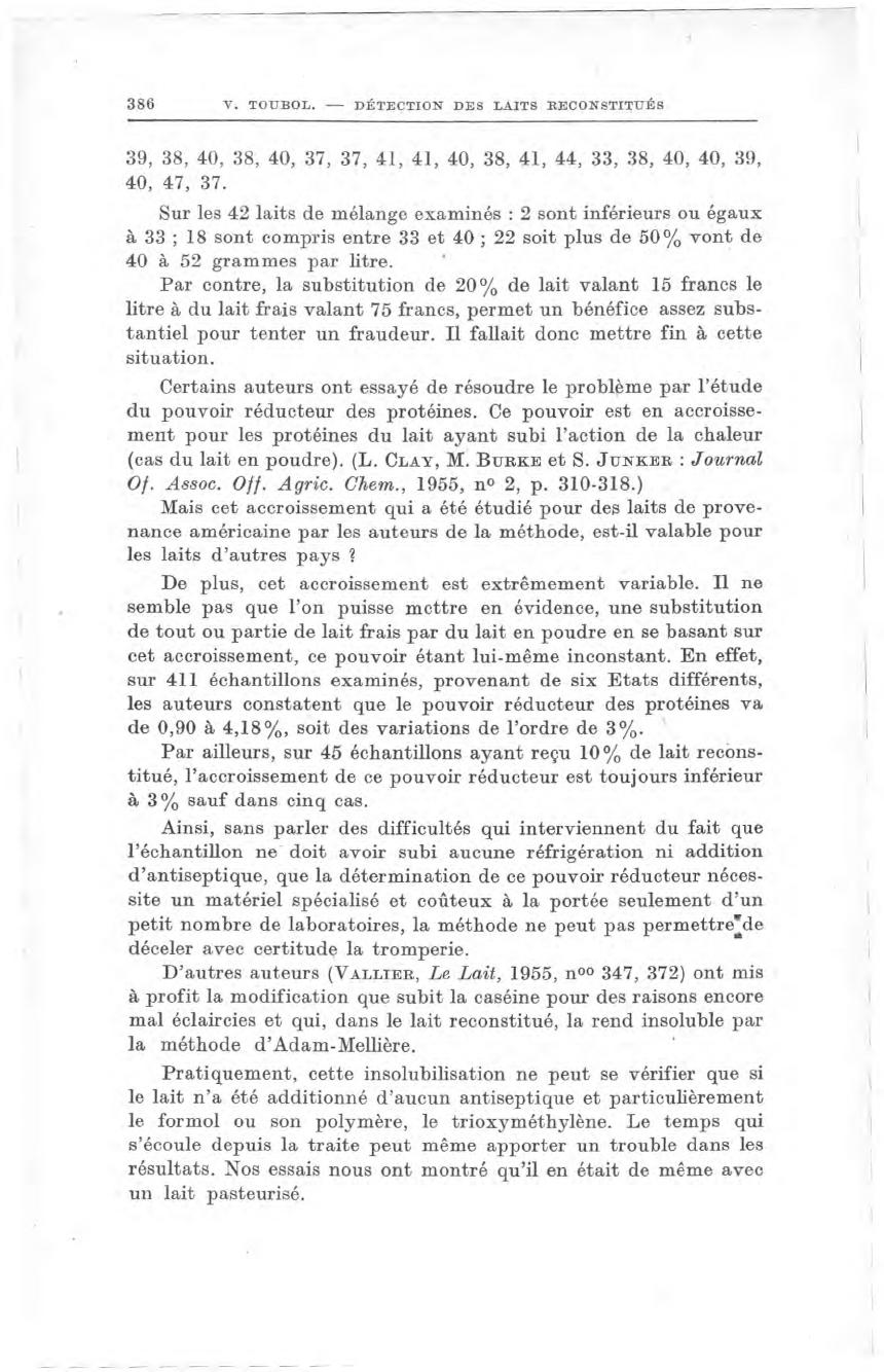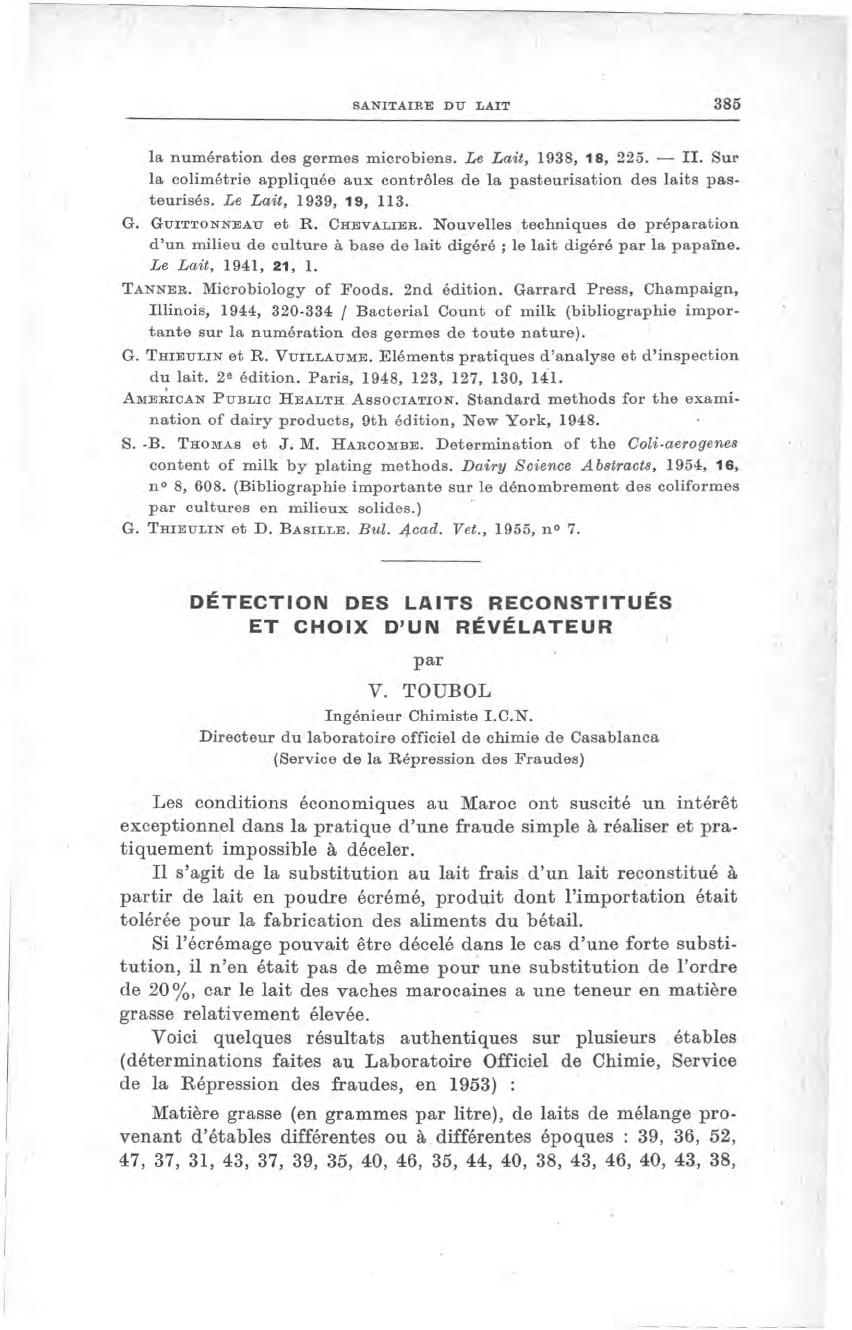 V. TOUBOL. - DÉTECTION DES LAITS RECONSTITUÉS