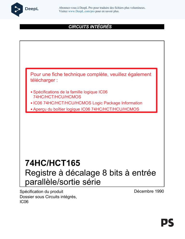 Les 74HC/HCT165 sont des dispositifs CMOS Si-gate à