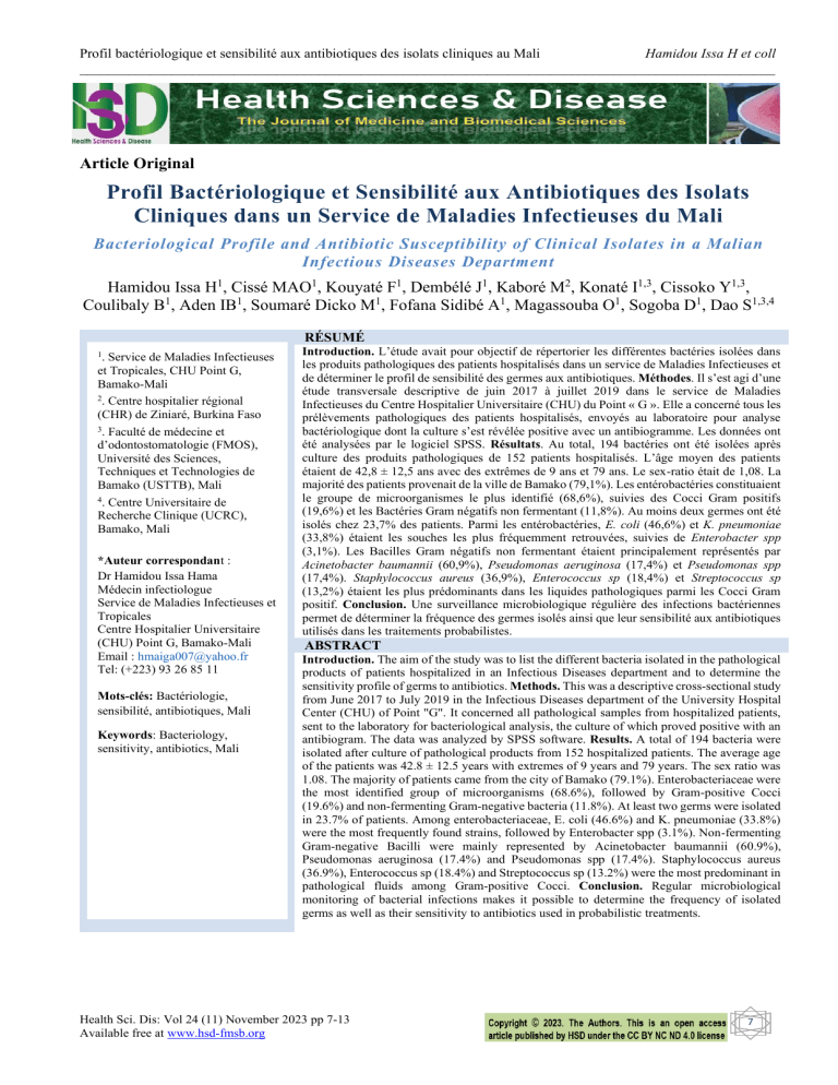 sanitaire au Mali. Les patients recrutés provenaient tous