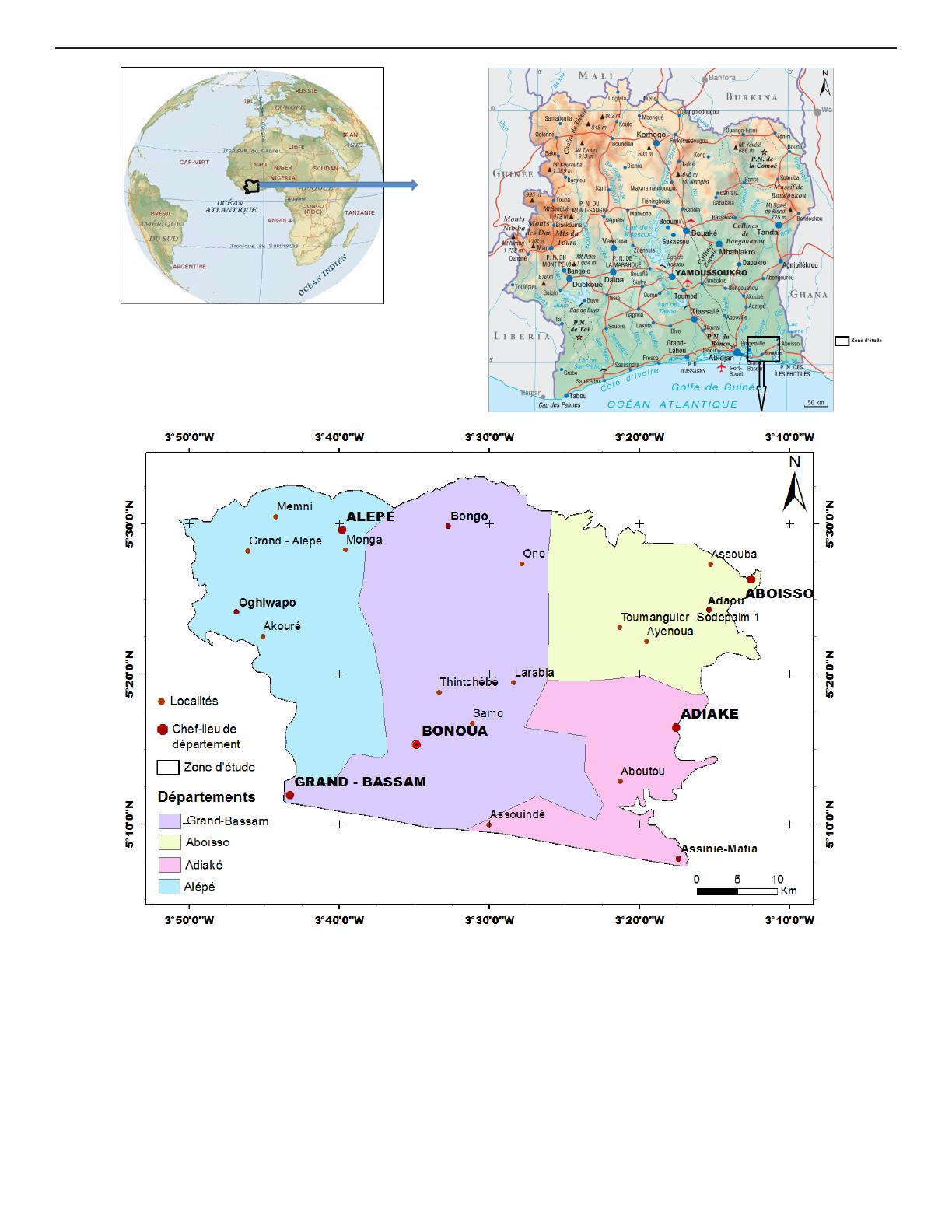 l’est par la lagune Aby et la rivière Bia (Figure 1).
