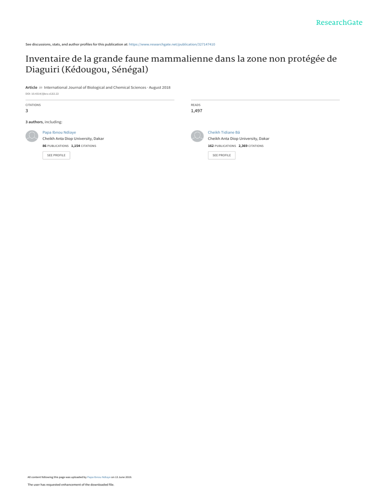 mammifères sauvages observées à Diaguiri