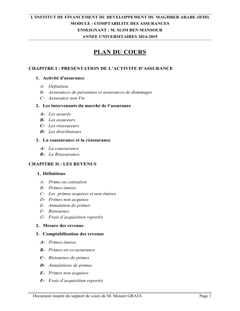 MODULE : COMPTABILITE DES ASSURANCES