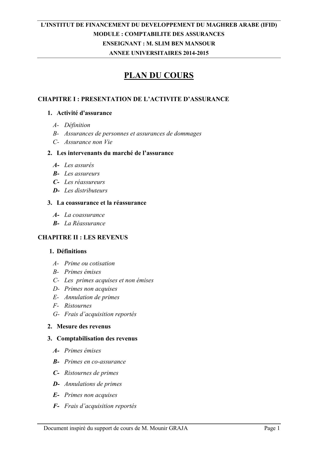Document inspiré du support de cours de M. Mounir GRAJA Page 5