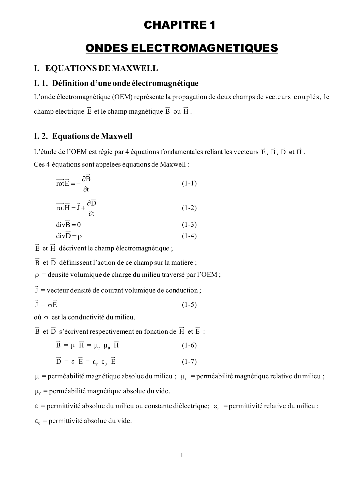 I. EQUATIONS DE MAXWELL