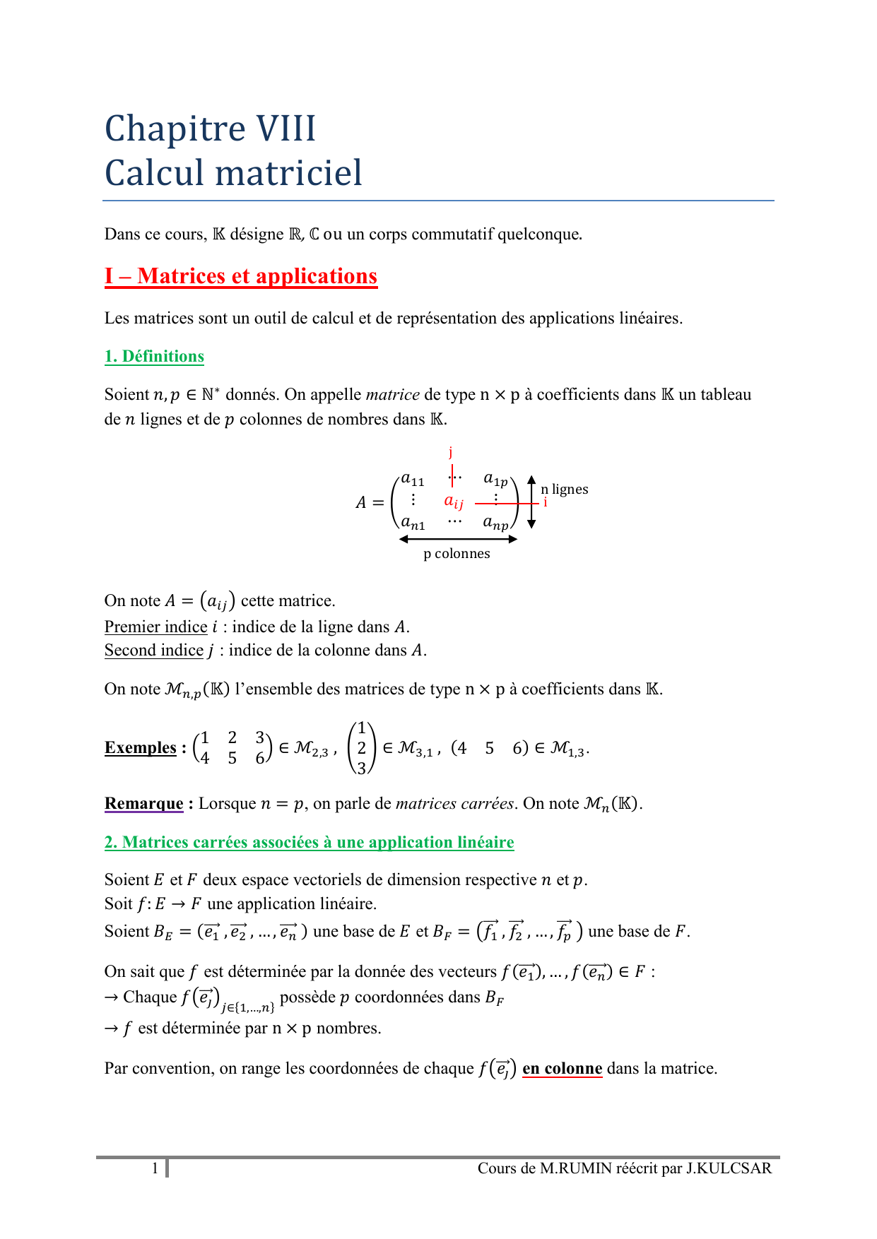 Cours de Calcul Matriciel : Matrices et Applications Linéaires