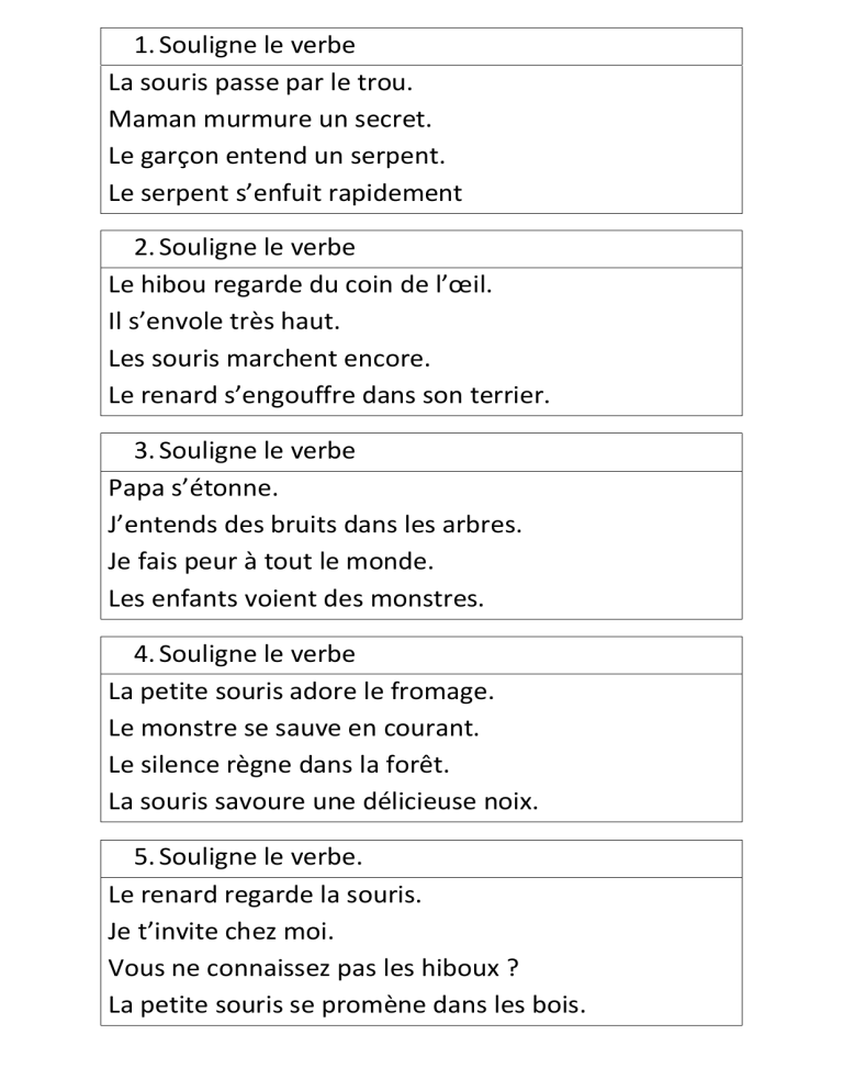 Exercice de grammaire : Souligne le verbe