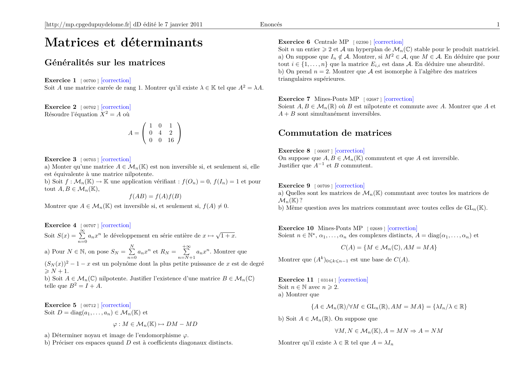 [http://mp.cpgedupuydelome.fr] dD édité le 7 janvier 2011 Enoncés 1