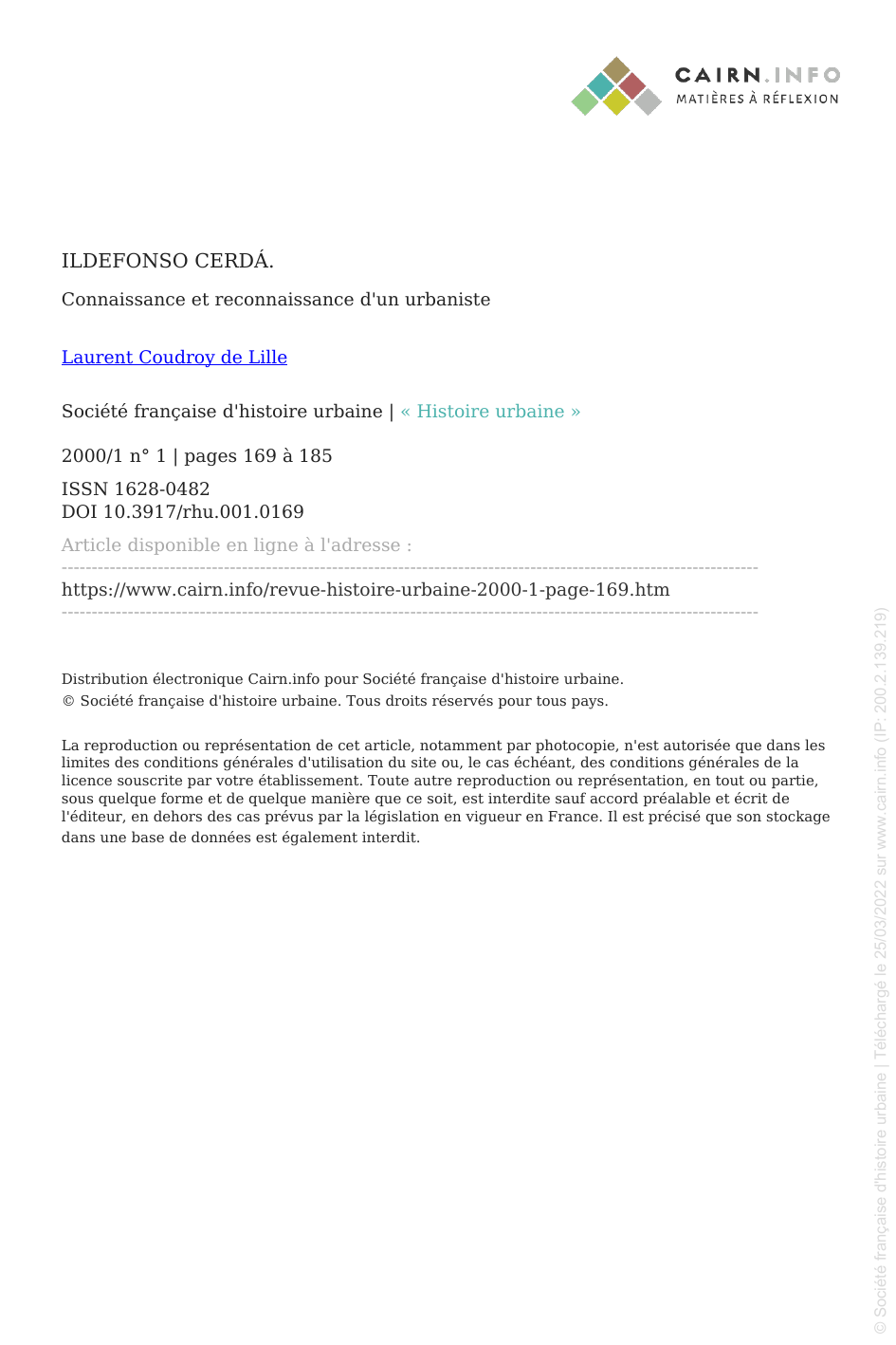 170 / Histoire urbaine - 1 / juin 2000