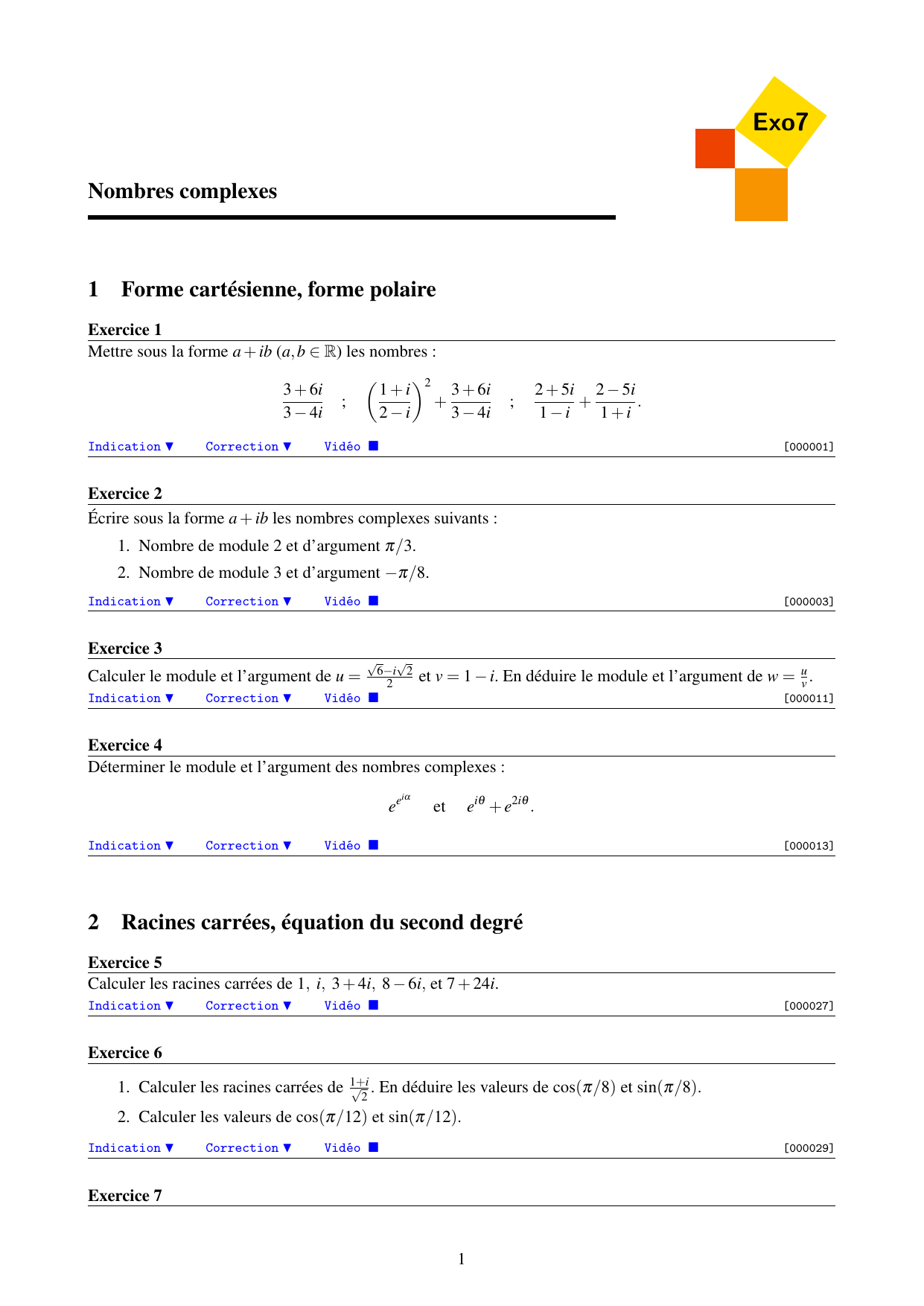 Exercices sur les nombres complexes - Exo7