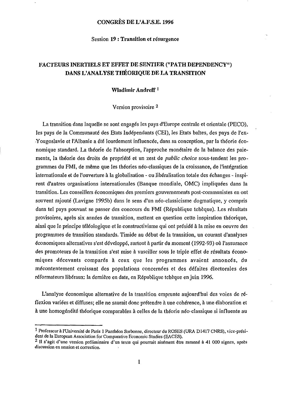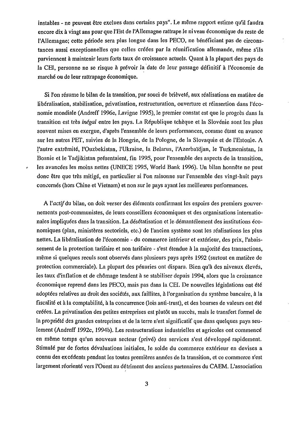 nomie mondiale (Andreff 1996e, Lavigne 1995), le premier constat est que le progres dans la