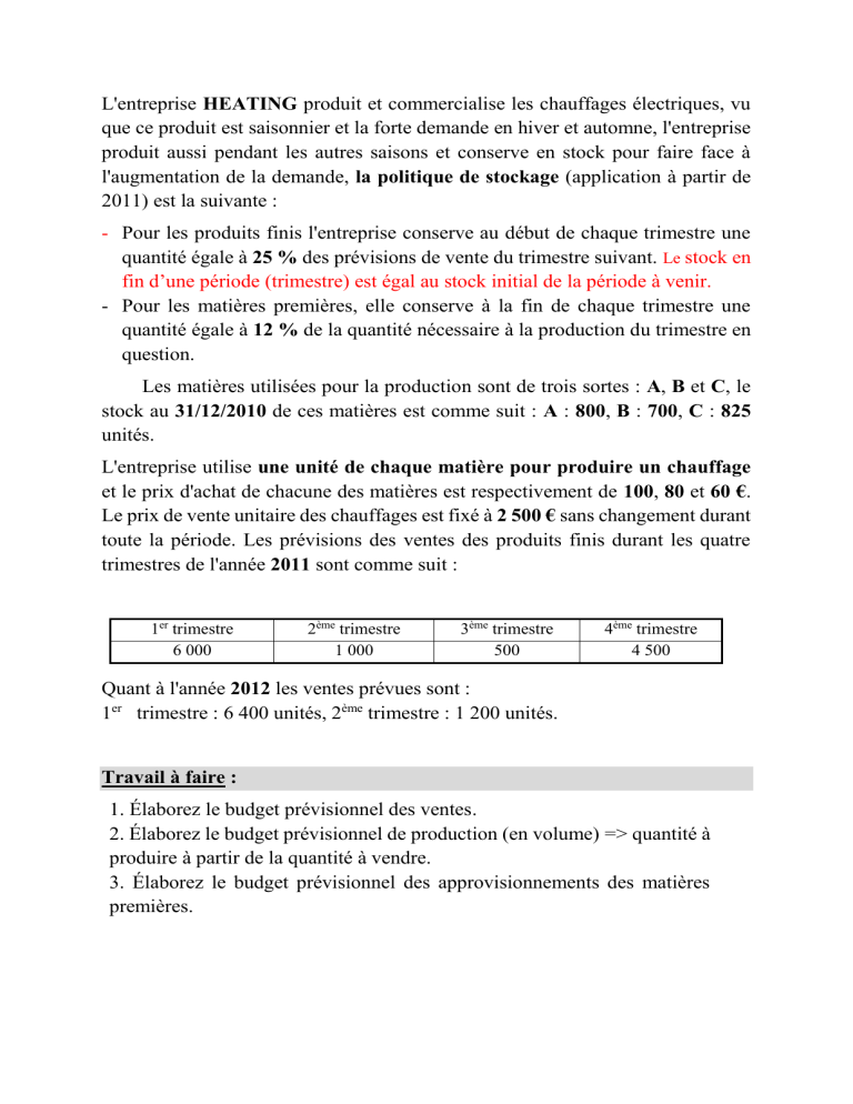 3. Élaborez le budget prévisionnel des approvisionnements des matières