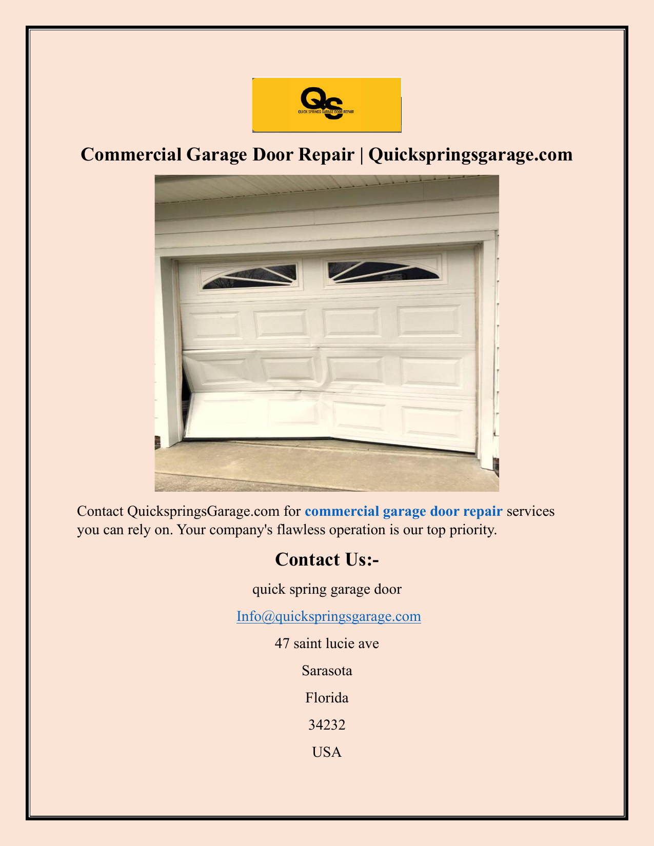 Commercial Garage Door Repair | Quickspringsgarage.com