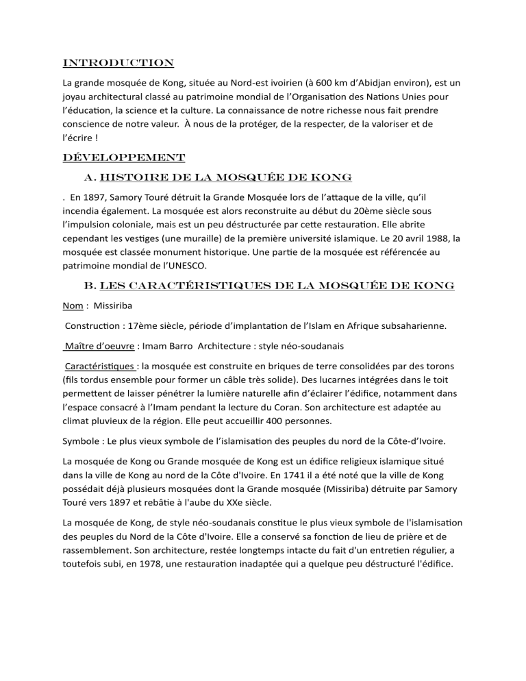 possédait déjà plusieurs mosquées dont la Grande mosquée (Missiriba) détruite par Samory