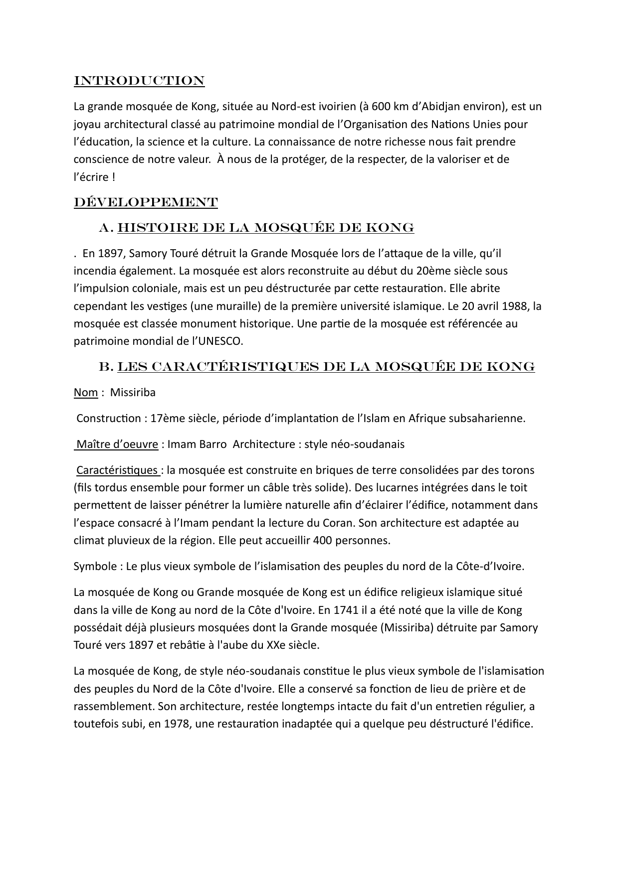 La mosquée de Kong, de style néo-soudanais constue le plus vieux symbole de l'islamisaon