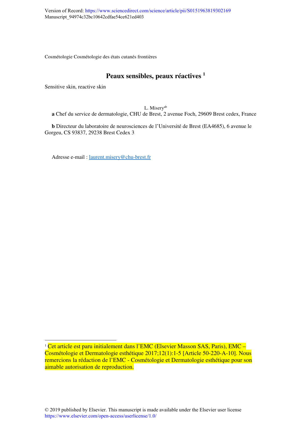 donc plus ou moins longue. Les peaux sensibles ont un retentissement sur la qualité de vie, tout