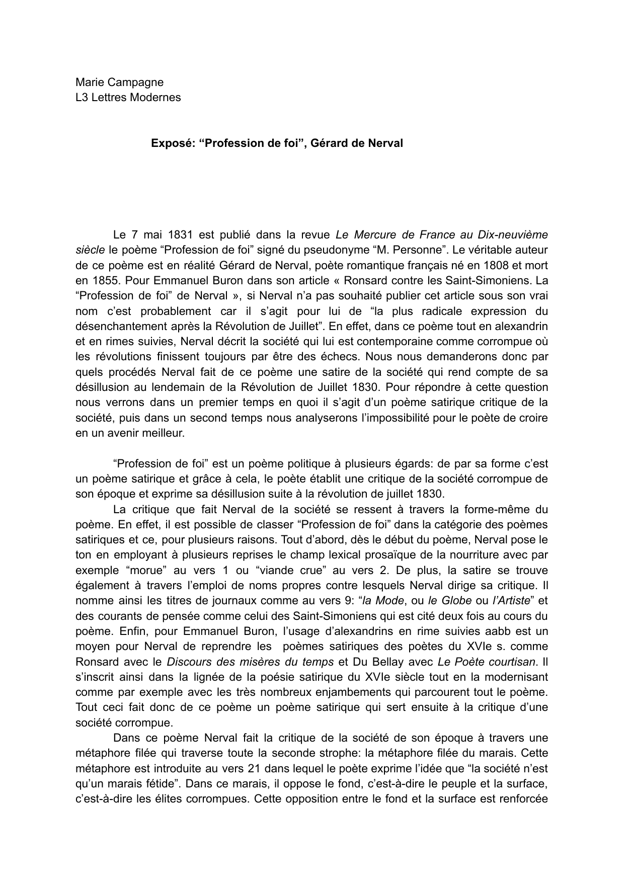 titre ironique du poème: “Profession de foi”. Ici, il fait tout sauf une profession de foi, il clame