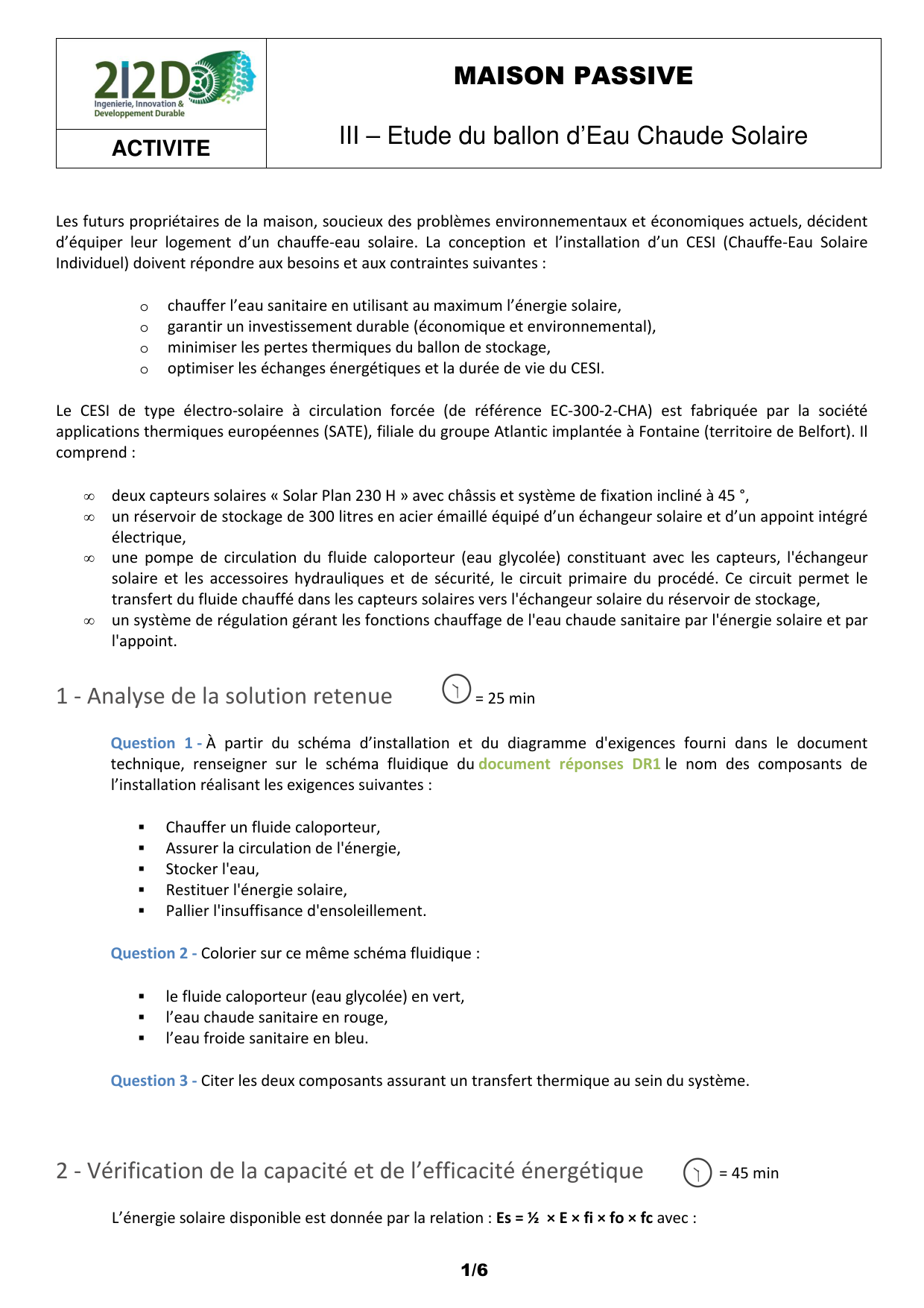 d’équiper leur logement d’un chauffe-eau solaire. La conception et l’installation d’un CESI (Chauffe-Eau Solaire