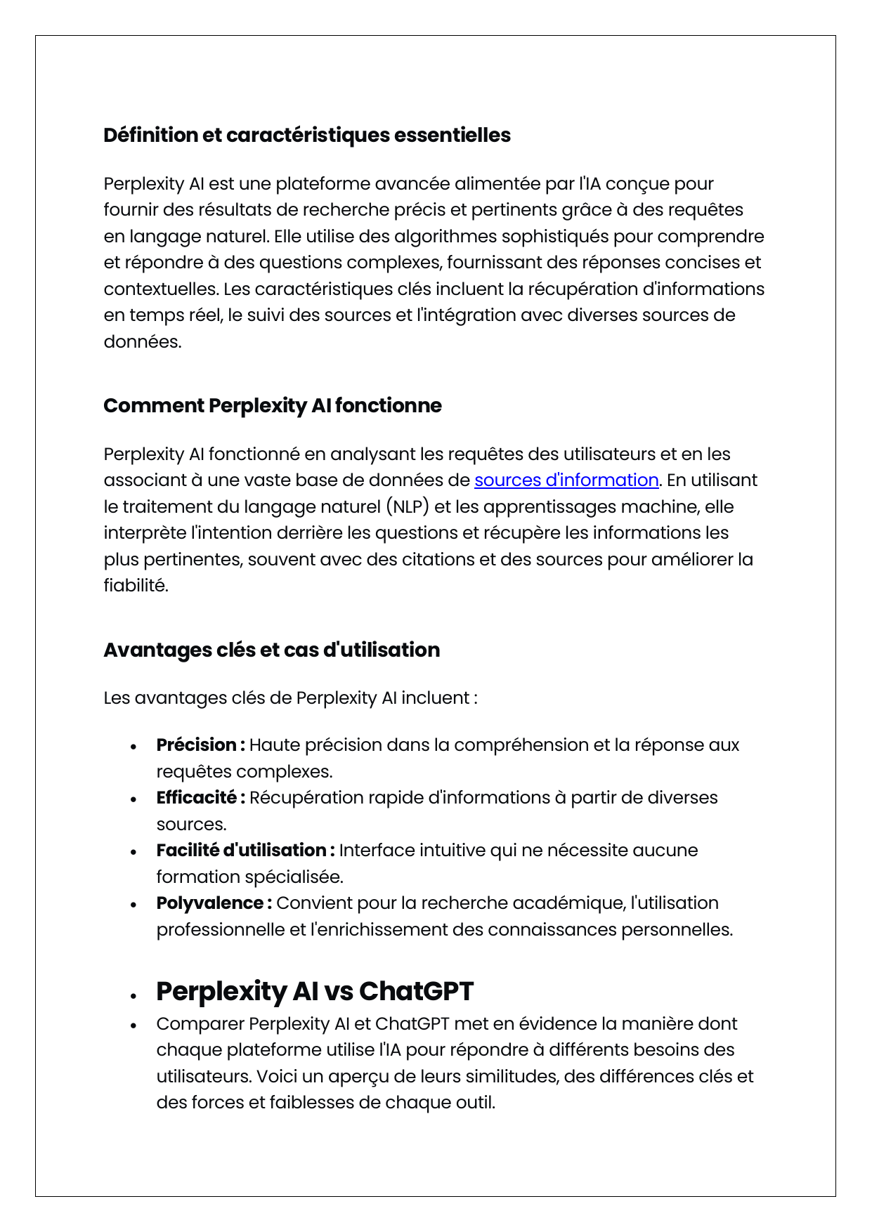 Les avantages clés de Perplexity AI incluent :
