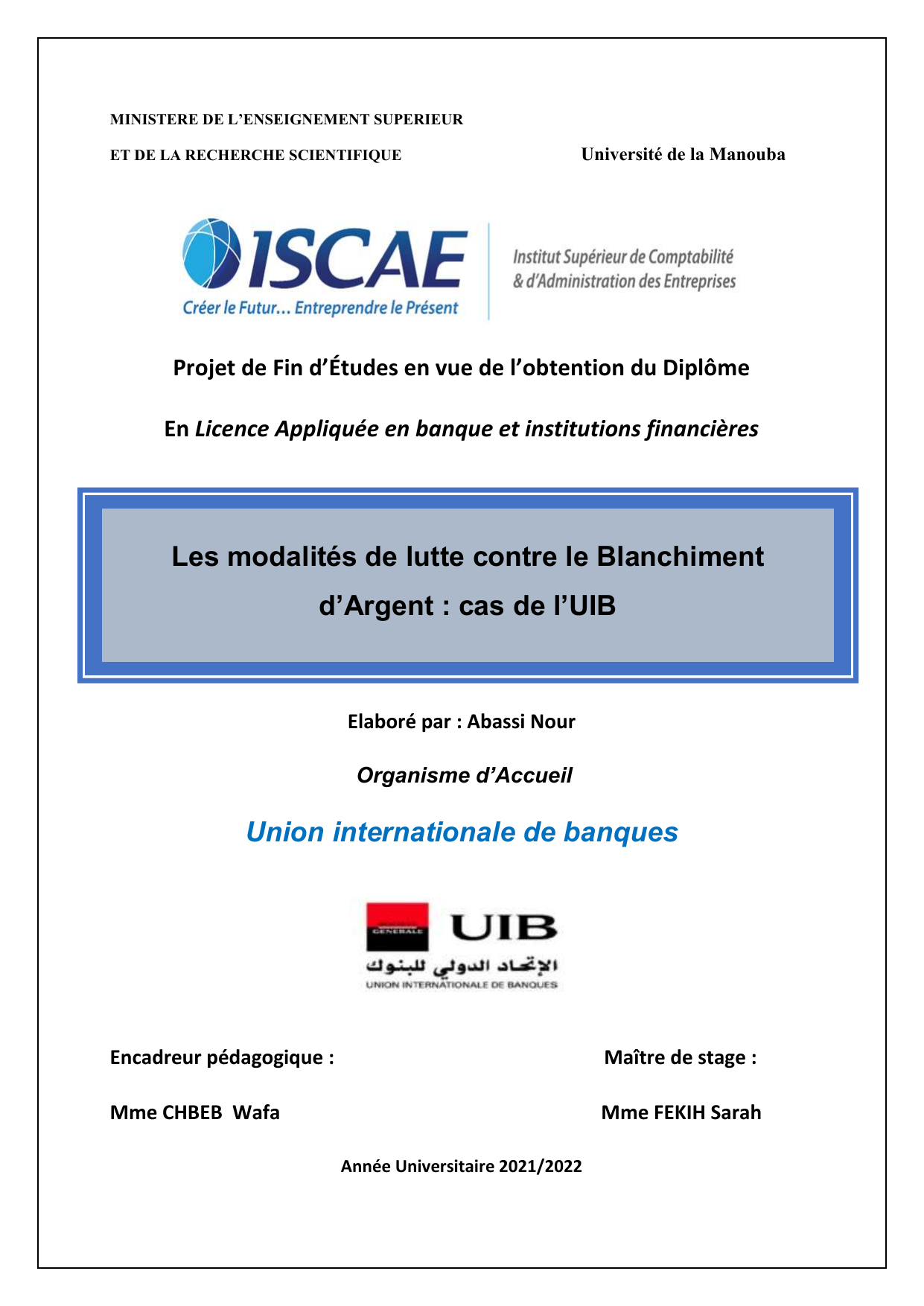 l’agence UIB El Ghazela Madame FEKIH Sarrah, pour le temps