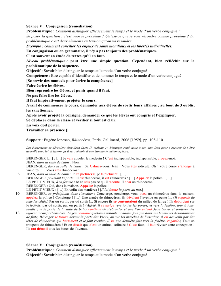 Séance V : Conjugaison (remédiation)