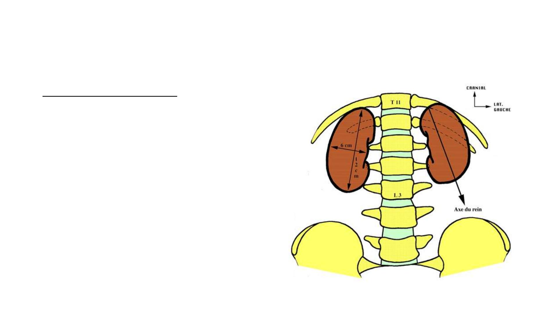 Rein droit : Bord inférieur de T11 - Bord inf. du