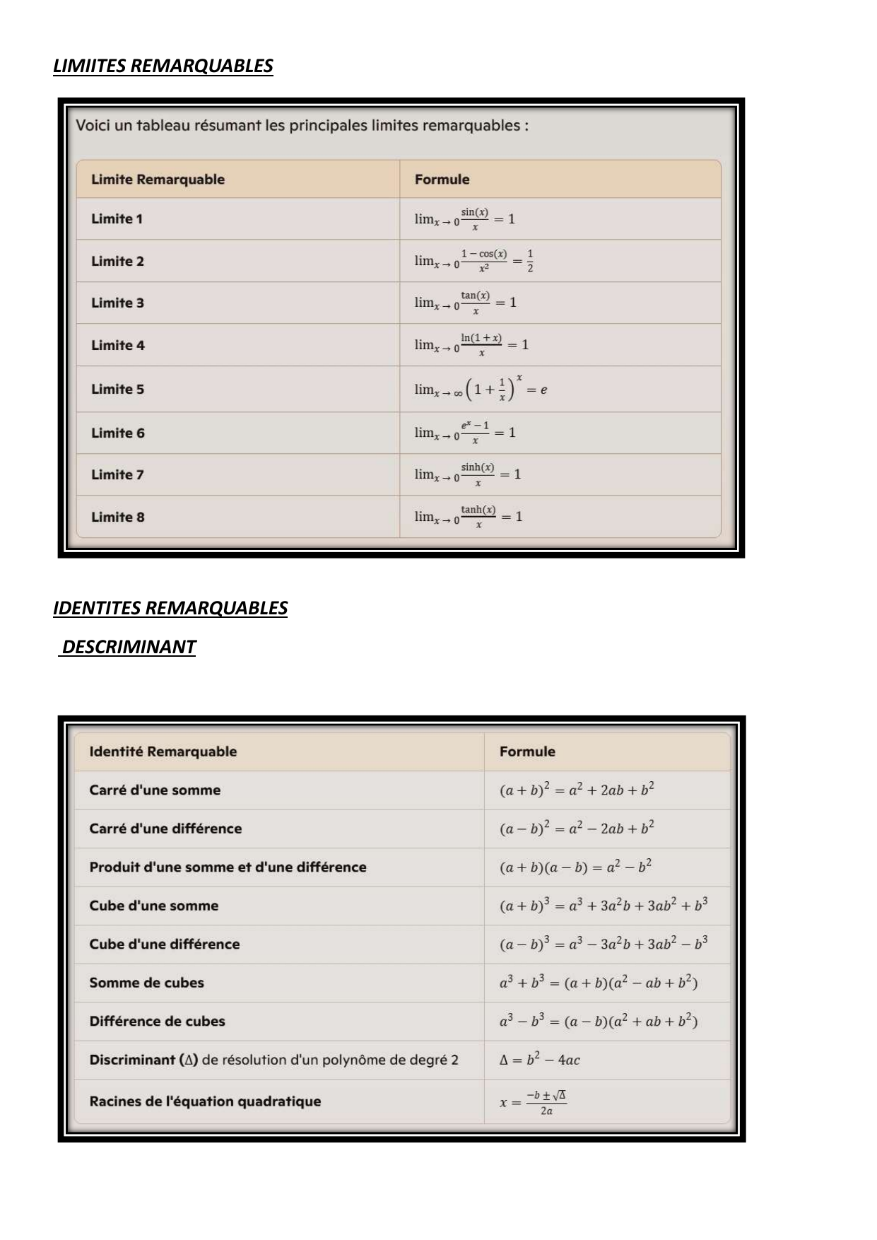 FPRMULES LIMIITES ET IDENTITES REMARQUABLES