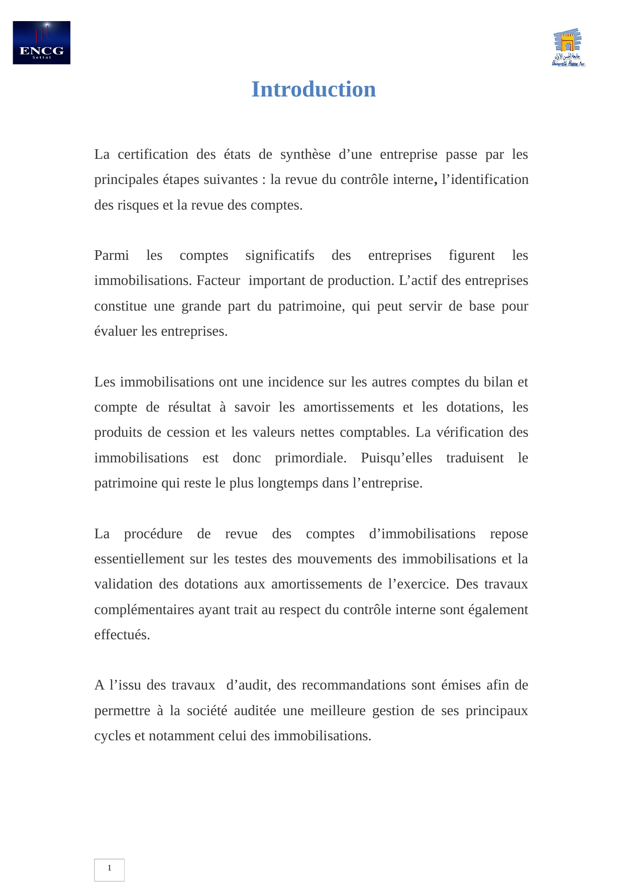 immobilisations doit donc faire, régulièrement l'objet d'un examen en ces secs par un
