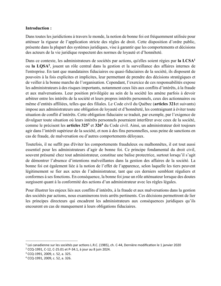essentiel pour les administrateurs d’agir de bonne foi. Ce principe fondamental du droit civil,