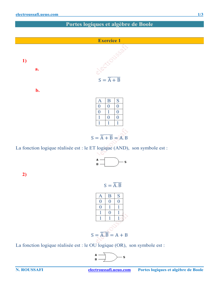 N. ROUSSAFI electroussafi.ueuo.com Portes logiques et algèbre de Boole