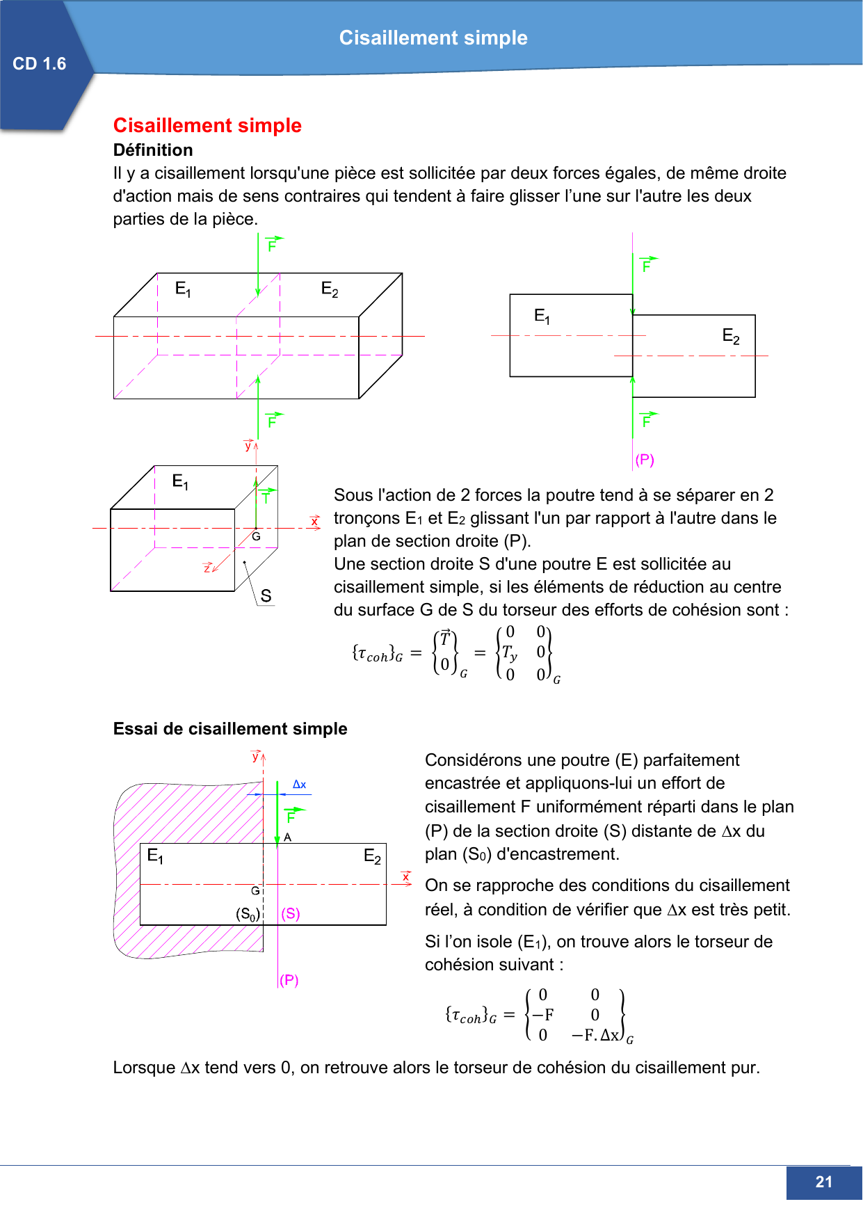 La section S cisaillée se déplace dans son plan. Ce déplacement est un glissement. Il est