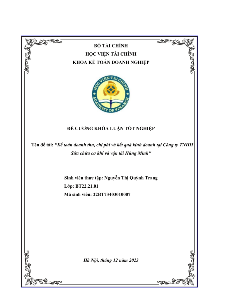 XÁC ĐỊNH KẾT QUẢ KINH DOANH TẠI CÔNG TY TNHH SỬA CHỮA CƠ