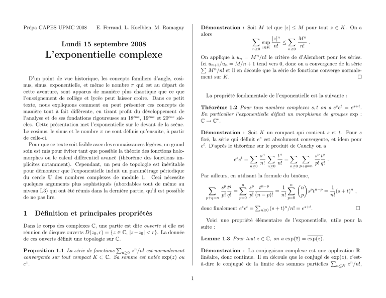 Théorème 1.5 L’exponentielle est l’unique fonction f:C→Csatis-