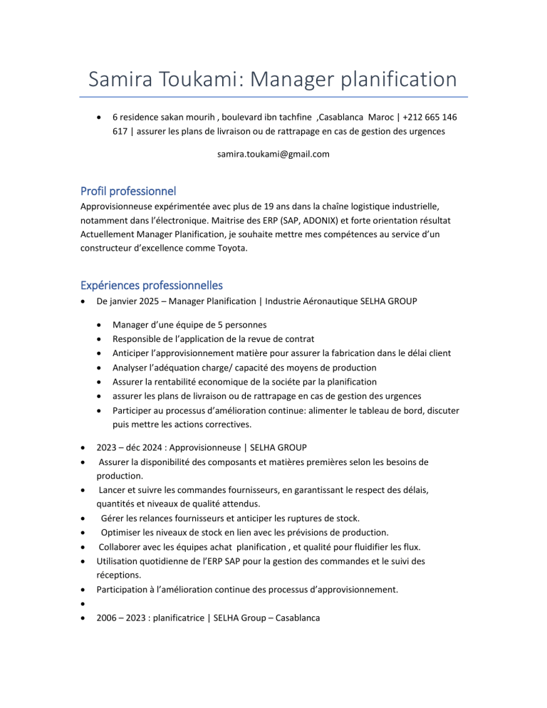 De janvier 2025 – Manager Planification | Industrie Aéronautique SELHA GROUP