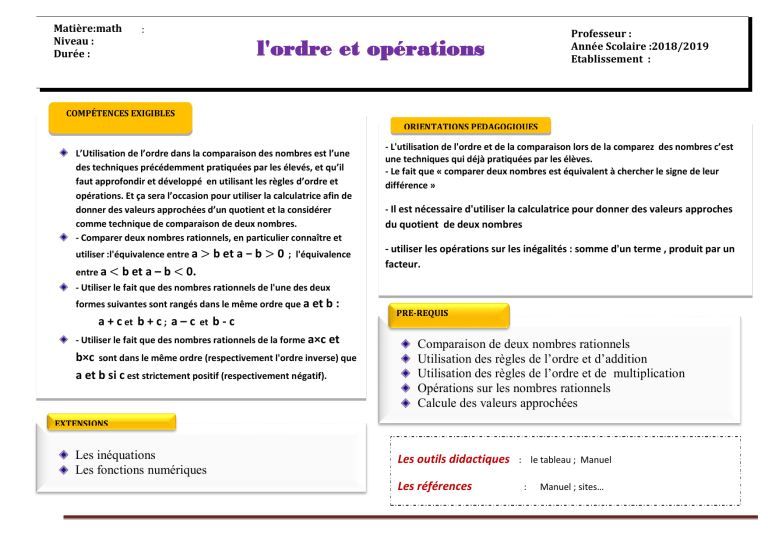 - L'utilisation de l'ordre et de la comparaison lors de la comparez des nombres c’est