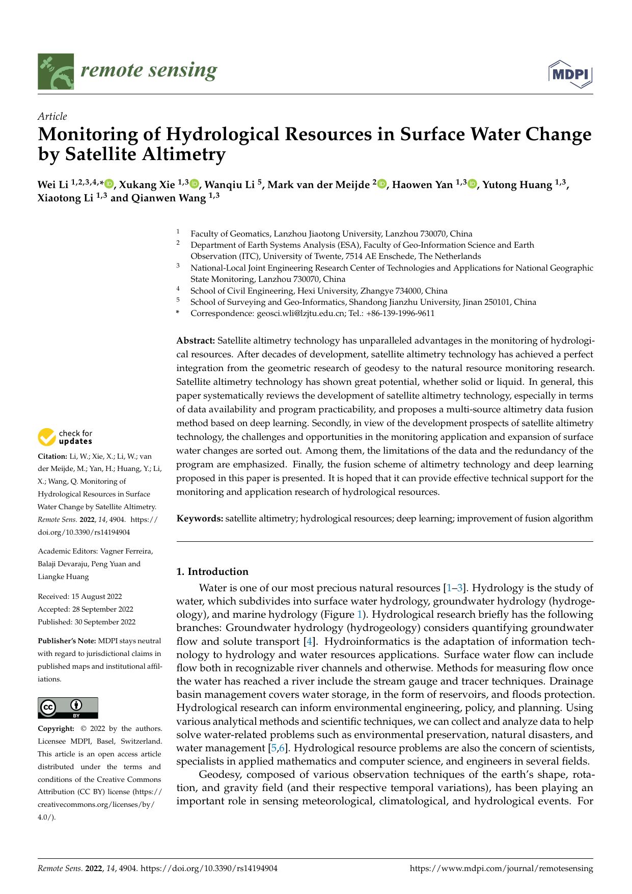 Satellite altimetry technology has unparalleled advantages in the monitoring of hydrologi-