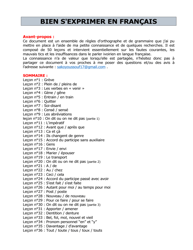 composé de 50 leçons et intervient essentiellement sur les fautes courantes, les