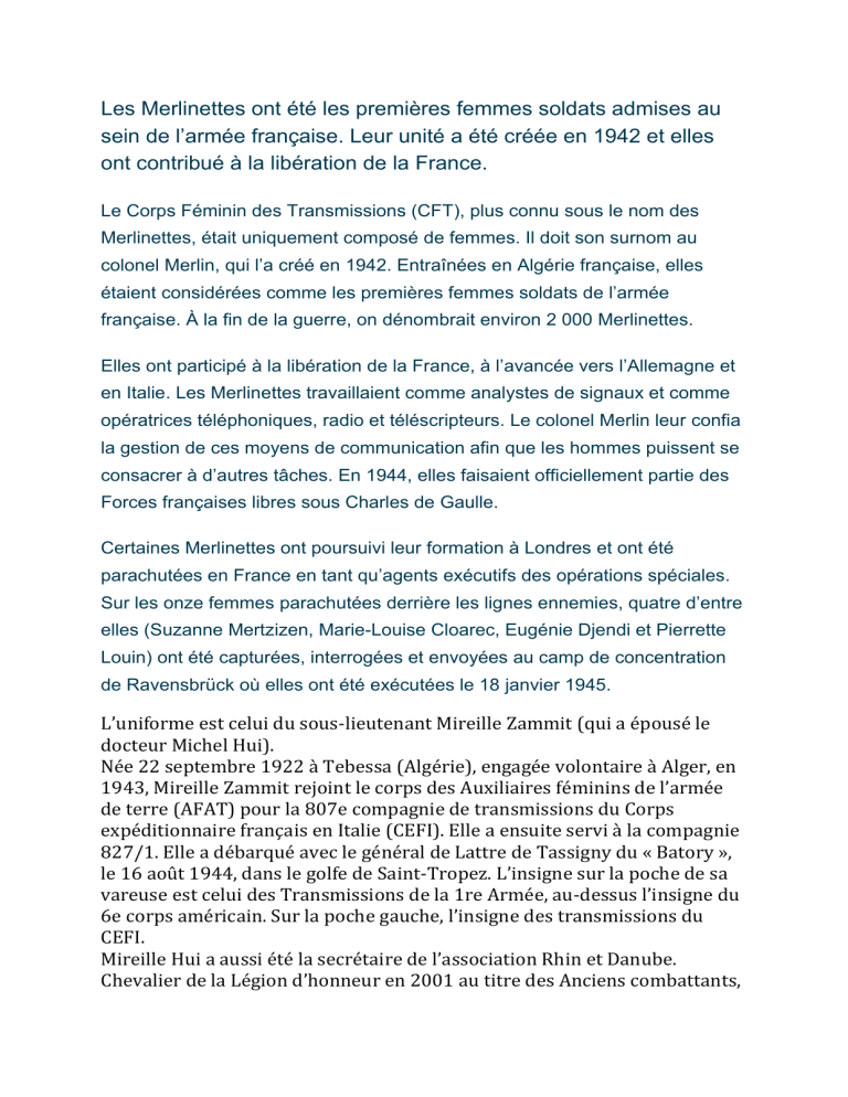 a été admirable » et par le général de Lattre de Tassigny2 : « les volontaires féminines de la