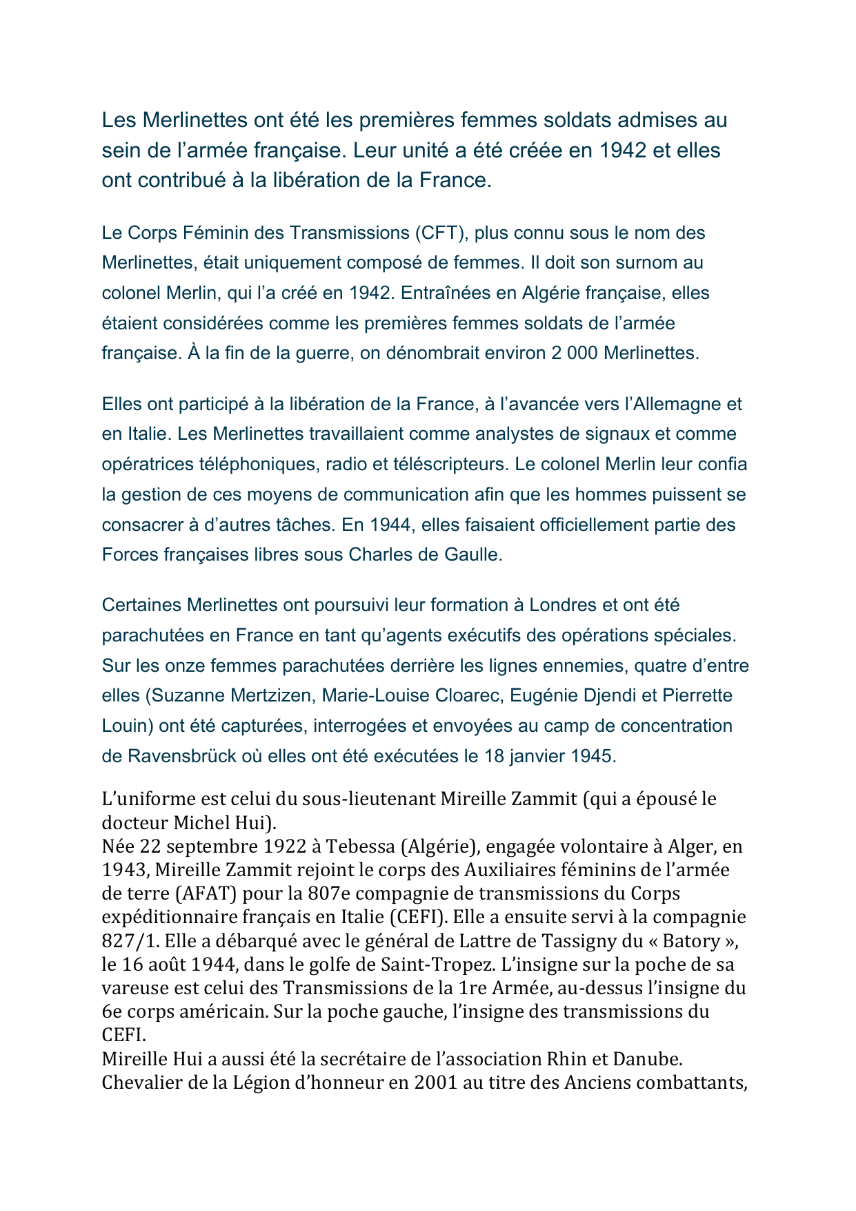 En avril 1944, les Merlinettes sont 1 095 dont 37 officiers et 121 sous-officiers1.