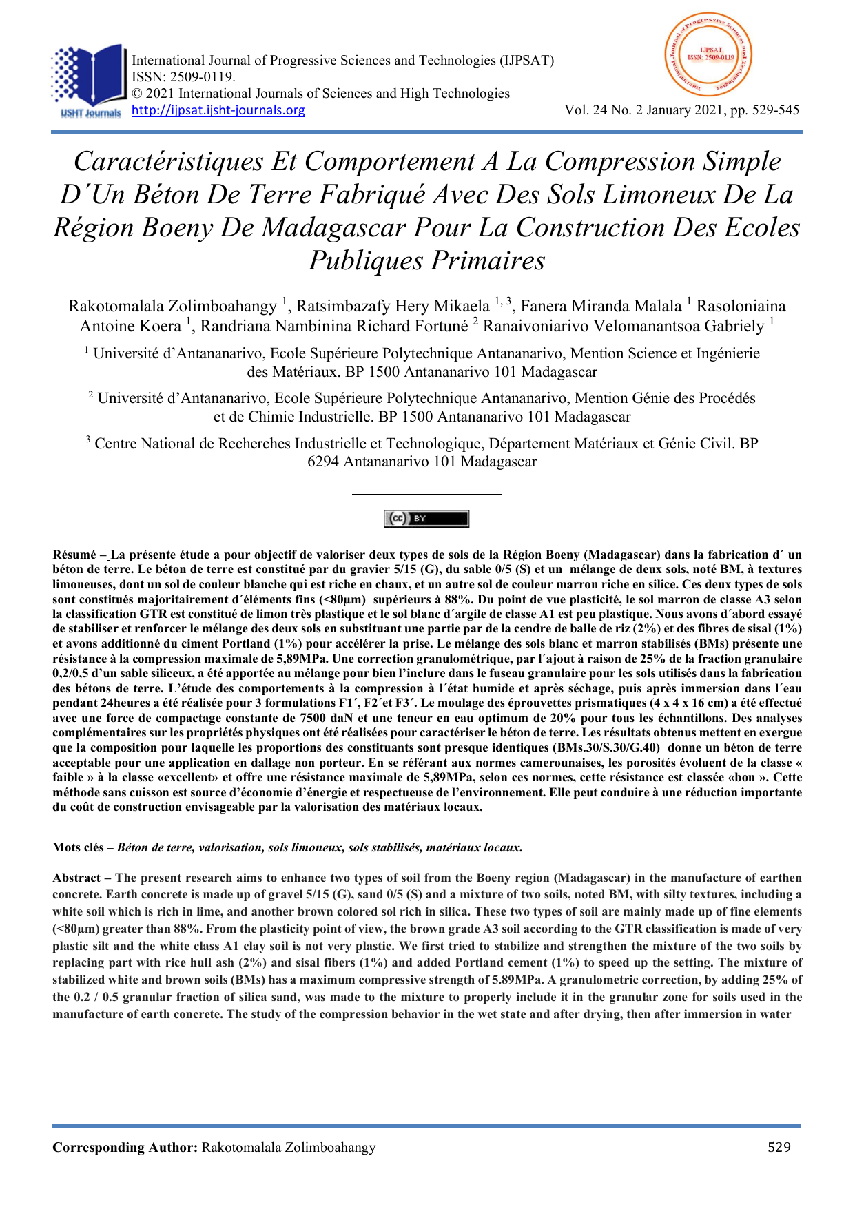 Résumé – La présente étude a pour objectif de valoriser deux types de sols de la Région Boeny (Madagascar) dans la fabrication d´ un