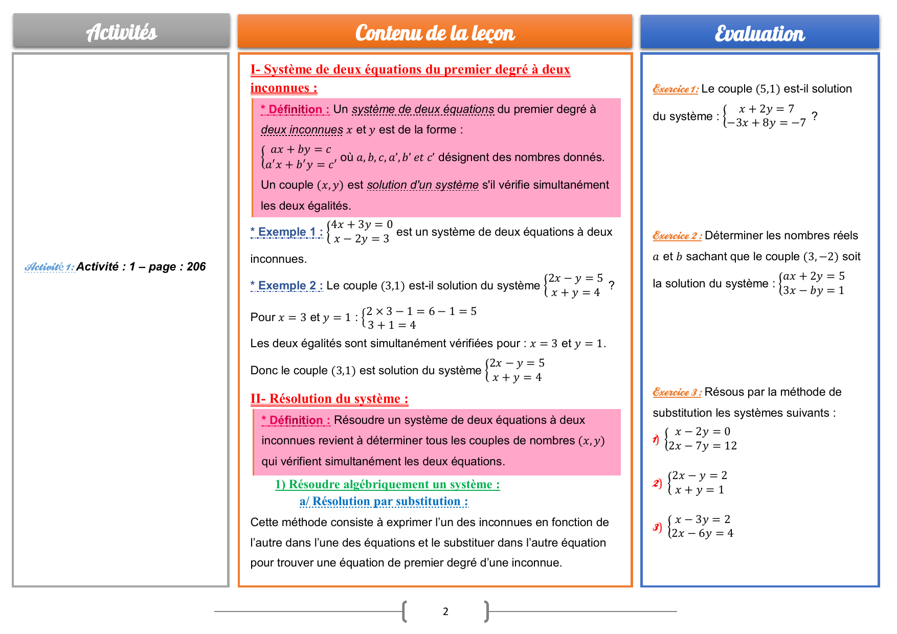 Exercice 8 : 1) Résous le système suivant :