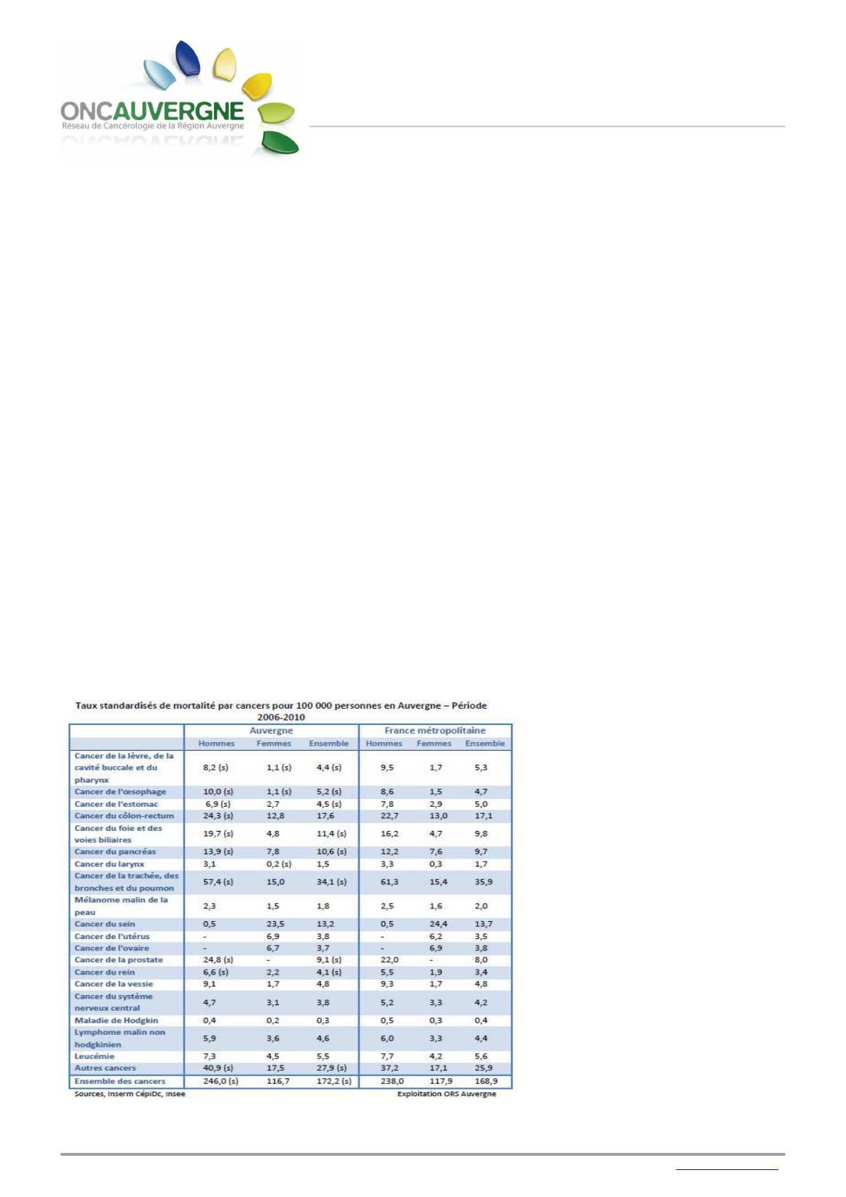 Le taux standardisé de mortalité par cancer pour 100 000 personnes en Auvergne est supérieur