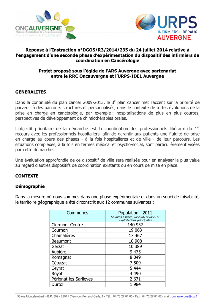 58 rue Montalembert - B.P. 392 - 63011 Clermont-Ferrand Cedex1 - Tél. : 04 73 27 81 03 - Fax : 04 73 27 81 02 - mail : oncauvergne@cjp.fr