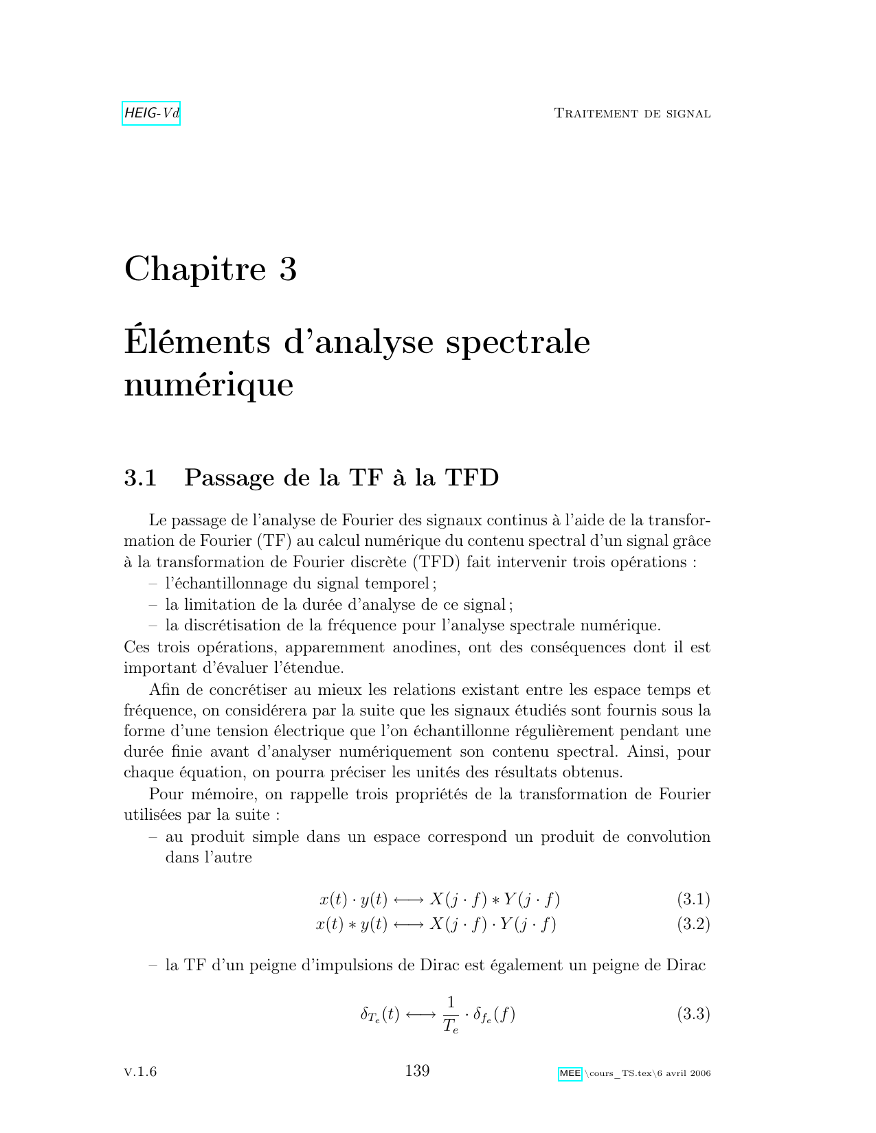 de la transformation de Fourier des signaux continus (équation 3.5). On obtient