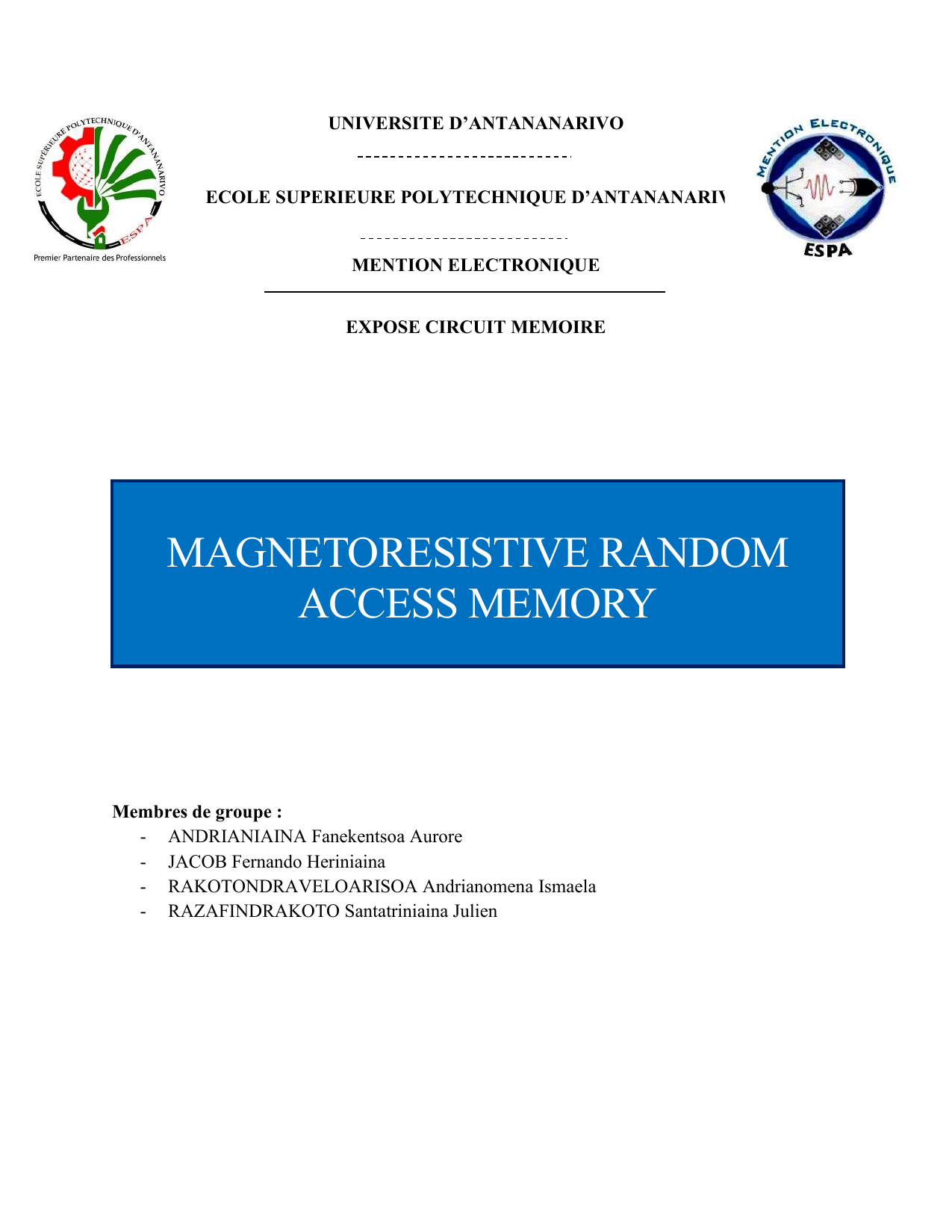 dispositifs à jonction tunnel magnétique ou MTJ (Magnetic Tunnel Junction). Tous ces circuits