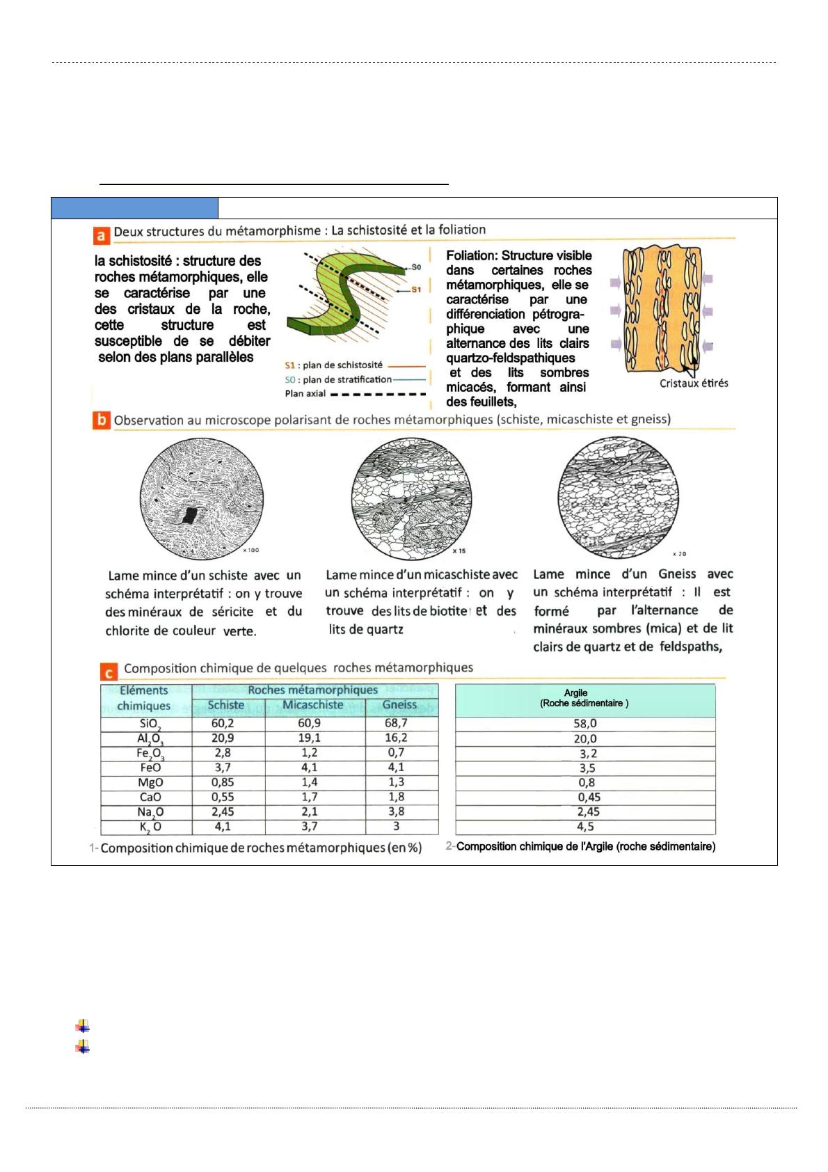 2 Bac SVT&SPC Unité 3 / Cours N°2 : Le métamorphisme et sa relation avec la tectonique des plaques