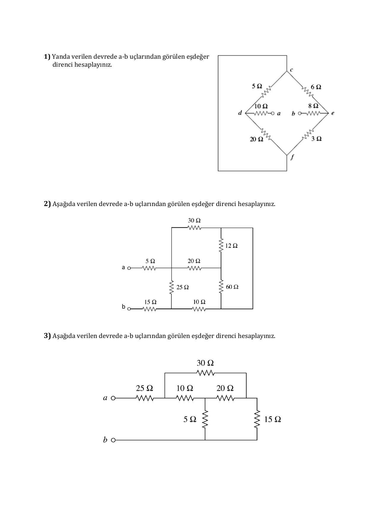 2) Aşağıda verilen devrede a-b uçlarından görülen eşdeğer direnci hesaplayınız.