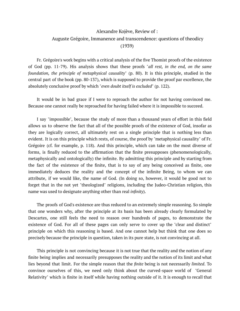 Indeed, by affirming that the infinite implies and necessarily presupposes the finite; that is to