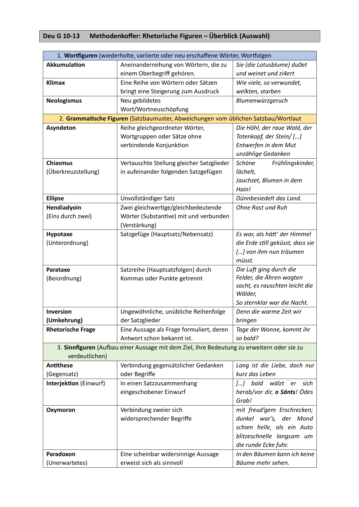 Methodenkoer: Rhetorische Figuren – Überblick (Auswahl)