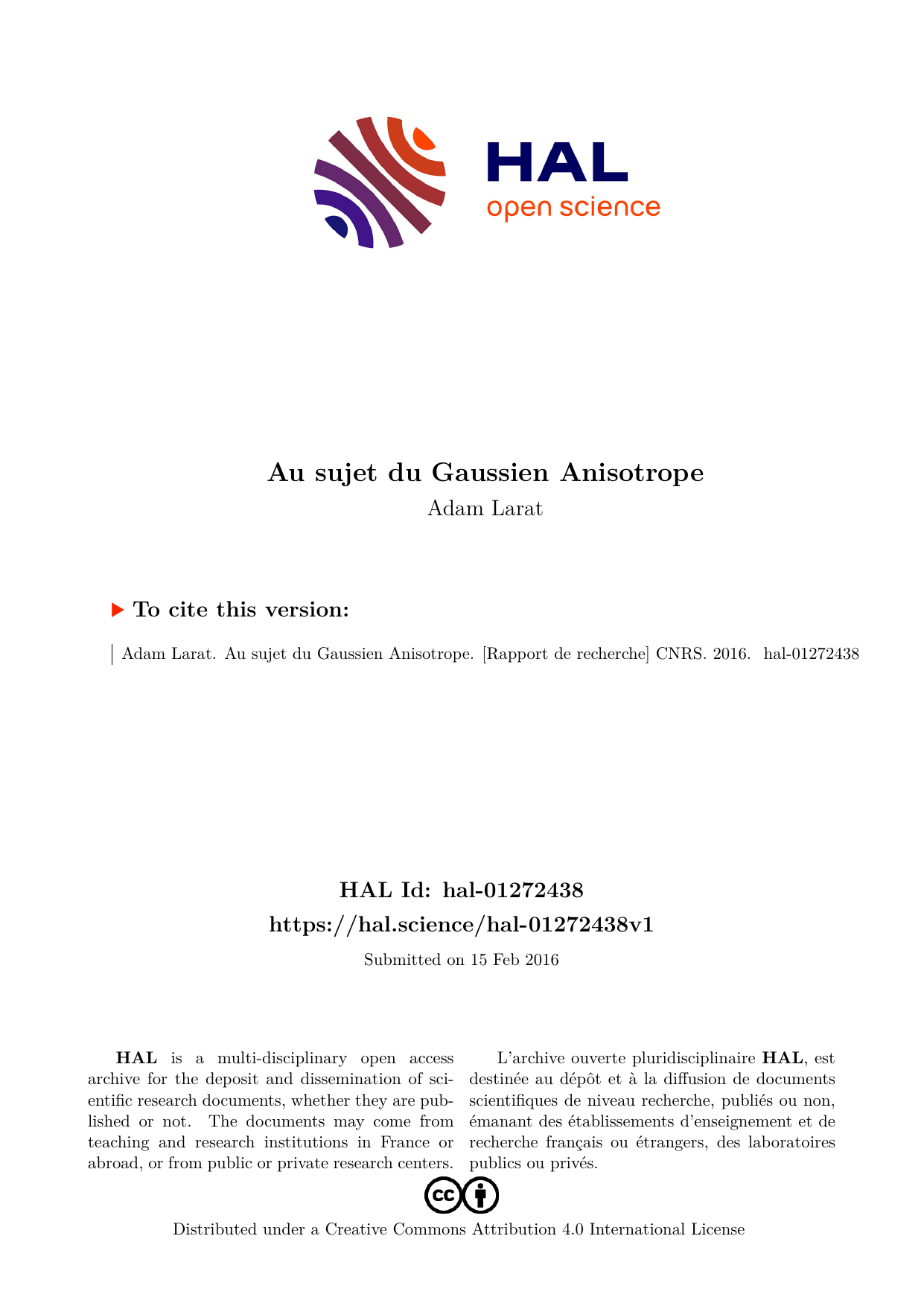 Adam Larat. Au sujet du Gaussien Anisotrope. [Rapport de recherche] CNRS. 2016. �hal-01272438�